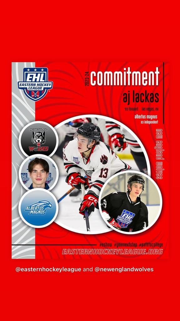 LACONIA, NH -- A.J. Lackas, a forward for the New England Wolves, has committed to Albertus Magnus College for the fall of 2024.