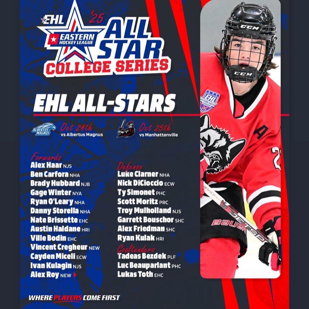 Congratulations to these 6 Wolves EHL Players who all were selected to play in the 2025 EHL All Star College Series, a series of games where EHL Junior players play against NCAA teams.