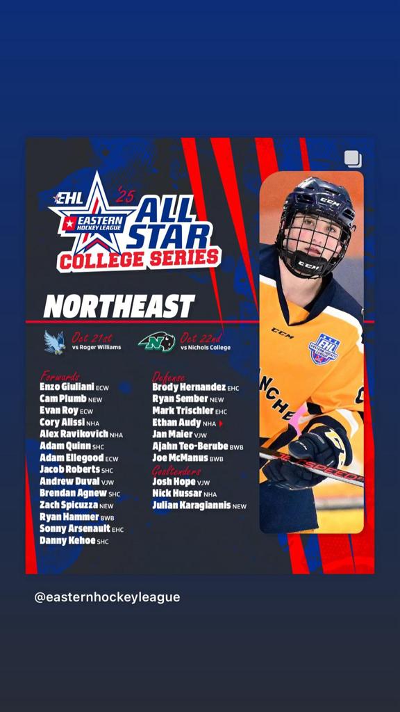 Congratulations to Alex Roy and Vinny Cregheur for making the Main roster and Cam Plumb, Zach Spicuzza, Ryan Sember and Julian Karagiannis for making the Northeast All Star squad.