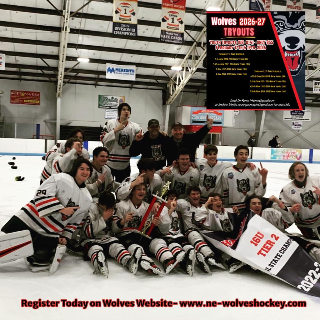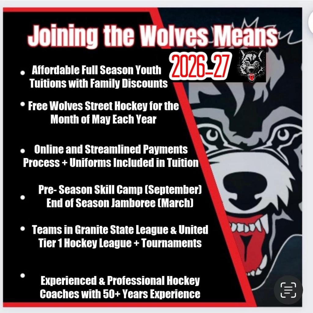 The Wolves will be offering Learn to Play up to NCDC Junior Hockey all played right in Laconia at the Merrill Fay Arena. This will include birth year teams and all levels, including U8, U10, U12, U14, U16 and U18.